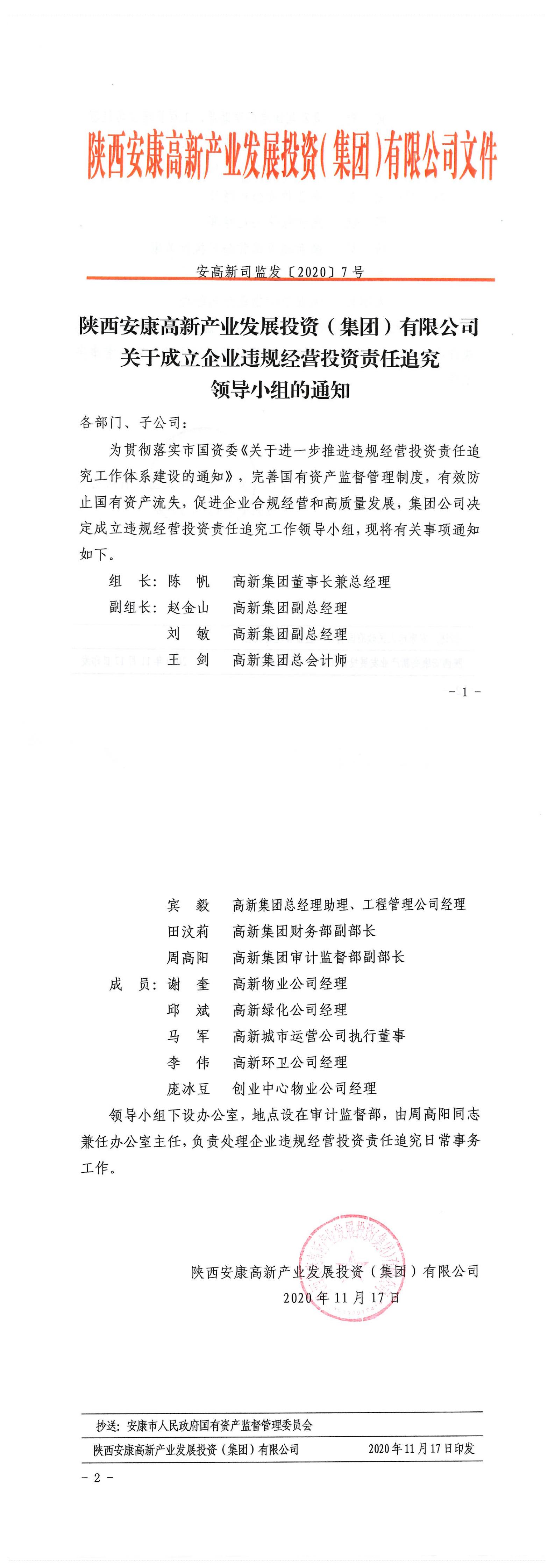 關(guān)于成立企業(yè)違規(guī)經(jīng)營(yíng)投資責(zé)任追究領(lǐng)導(dǎo)小組的通知